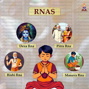 Rna (Samskrit: ऋणम्) refers to the concept of pious obligations that evolved as part of Dharma. They are specific responsibilities to be discharged by every individual during one's lifetime in gratitude to the various benefits that one obtains in life from different sources.
